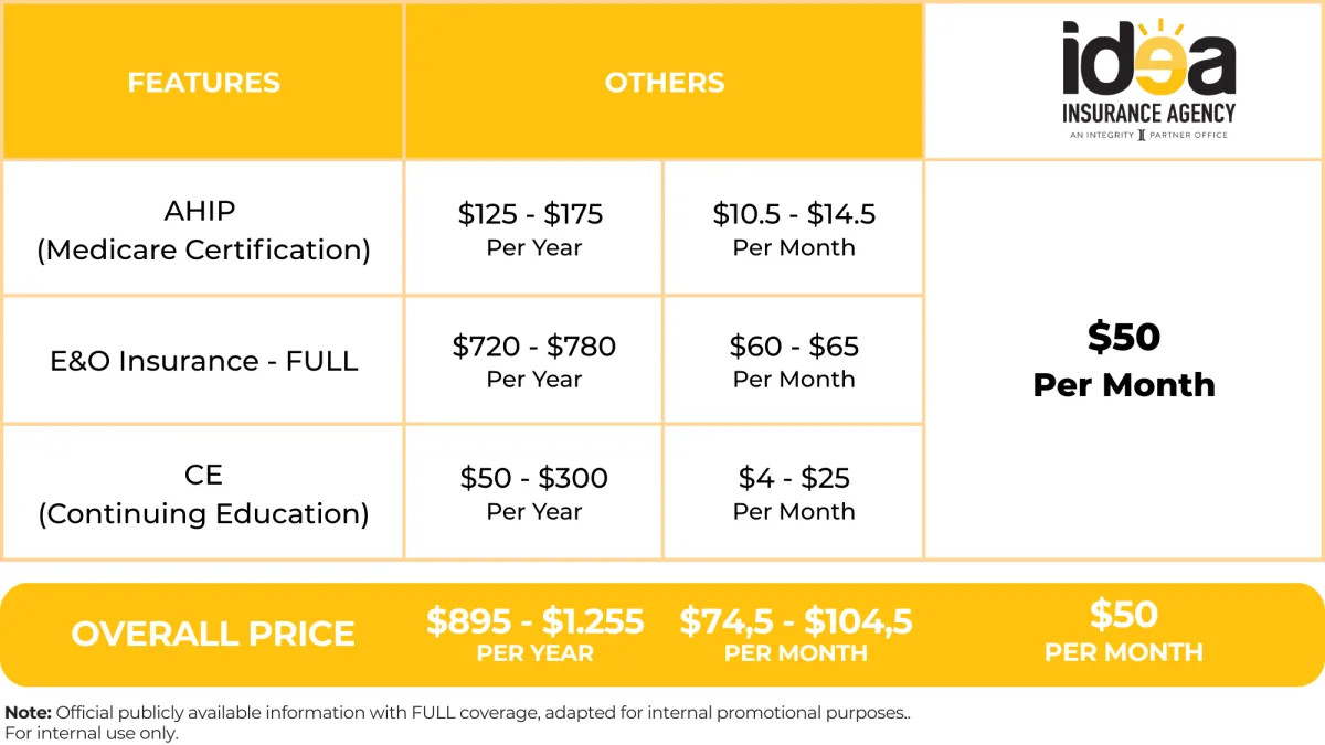 Integrity Marketing Partners, LLC and its affiliates (“Integrity”) provide certain support and services to Idea Insurance Agency, which operates independently as a licensed agency. Idea Insurance Agency does not represent Integrity.
